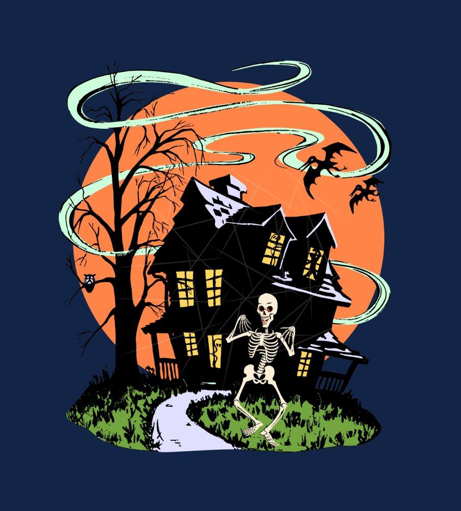 Vintage Halloween Haunted House and Skeleton PNG Free Download
